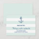 Registrierkarte der Hochzeit in Urlaubsort mit marineblau Anker und minzgrün Streifen. Ideal für Hochzeiten am Strand und für Party mit Wassersportaktivitäten.