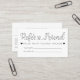 Diese elegante und einfache Kundenkarte eignet sich perfekt für jeden Salon oder jedes andere Geschäft. Es zeigt hübsche und niedliche handgeschriebene schwarze Typografie mit dem Wort "Verleih einen Freund", neben süßen kleinen Herzen und Discount-Nachricht auf einem weißen Hintergrund. Auf der Rückseite beinhaltet alle Ihre Details und Social Media-Informationen. Es ist minimalistisch, mädchenhaft, einzigartig und trendig; das perfekte Design, um Ihre Dienstleistungen zu vermarkten. ***WICHTIGE HINWEIS FÜR DESIGN: Für individuelle Designanfragen, wie z.B. passende Produktanfragen, Farbänderungen, Platzierungsänderungen oder andere Änderungswünsche, klicken Sie bitte auf den Button "MESSAGE" oder senden Sie eine E-Mail an den Designer direkt unter lafemme.art@gmail.com. Sie können ihr sogar eine Anfrage für ein komplett individuelles und neues Design schicken.