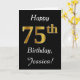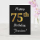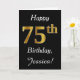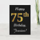 Dieses schlichte Design der Geburtstagskarte zeigt die Meldung "Happy 75 th Birthday", die "75." hat ein goldenes Aussehen in den Imitaten. Es enthält auch einen personalisierten Namen und einen schwarzen Hintergrund. Es könnte jemandem gegeben werden, der seinen fünfundsiebzigsten Geburtstag feiert.