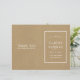 Rustikales und einfaches Hochzeitsfeierprogramm auf einem Imitat braunes Kraftpapier mit weißem Schrift. HINWEIS: Sie müssen sie bei ihrer Ankunft halbieren.