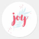 Ein individueller Aufkleber mit Text "Joy" und festlicher Illustration.