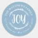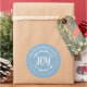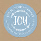 Erschwingliche, individuell bedruckte Rundaufkleber mit Rücksendeadresse personalisiert mit Ihrem Familiennamen und Ihrer Rücksendeadresse. Dieses rustikale, moderne Urlaubsdesign besticht durch schlichte JOY-Schriften und Äste auf blauem Hintergrund. Verwenden Sie die Designtools, um die Hintergrundfarbe und die Schriftart zu ändern, um Ihre eigenen Weihnachtslieder individuell anzupassen.