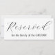 Einfache Kalligraphie reserviert Hochzeitstisch Familie Sitzzeichen.
