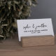 Diese "Save the Date" Gummi-Briefmarke zeichnet sich durch eine einfache kalligraphische Schrift mit einem individuelle Name und Feiertag aus.