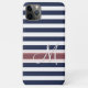 Moderne dunkle, dunkelblaue und weiße Streifen Muster. Mit einem Banner, um mit dem Monogramm Ihrer Wahl zu personalisieren oder anzupassen. Schönes, modernes und cooles Cover für den Trend-geschickten und kunstliebenden angesagten Trendsetter, künstlerischer Motif-Liebhaber, der will, ihr Handy vor Staub und Schmutz, Abnutzung und Tränen zu schützen. Dieses Design ist erhältlich in Apple iPhone 6, 7, und 8 Plus, 10 oder X, XR, XS, 11, 12, 13 Mini, 14, 15 Plus, und Pro Max Handy Hüllen. Zeigen Sie Ihren Stil, sehen Sie in der Mode und fühlen Sie sich stilvoll mit einem einzigartigen Design auf einem mobilen Zubehör Ihrer Wahl.