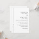 Einfach, elegant und geschmackvoll, bietet dieses klassische Hochzeitseinladungs-Design eine dünne Linie entlang der links Kante mit dem Monogramm der Braut und des Bräutigams. Eine Kombination aus zeitloser, eleganter Serif-Schriftart, gepaart mit einem klassischen Script-Schriftart, wird für die Namen der Braut und des Bräutigams und anderen Akzent-Text verwendet. Sie können die Textplatzierung an Ihren Anzug anpassen, entfernen oder anpassen. Der beliebte weiße Hintergrund trägt zur klaren Einfachheit dieses Designs bei. Auf der Rückseite der Einladung befindet sich eine Textvorlage für die Aufnahme eines QR-Codes, um Ihren Hochzeitsgästen eine einfache UAWG zu ermöglichen und Details und Pläne rund um die Hochzeit zu sehen. Diese Einladungen sind sowohl in gedruckten als auch in papierlosen digitalen Download-Formaten erhältlich.