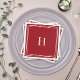 Dieses schlichte und elegante Design mit klassischem Stil besticht durch eine doppelte Grenze in einem geschmackvollen, neutralen Elfenbeinbeige auf einem roten Hintergrund. Der Rand ist perfekt symmetrisch und bildet die gesamte Serviette mit zwei parallelen Linien, die entlang ihres Umkreises verlaufen. Eine Textvorlage ist in der Mitte des Designs enthalten, um mit Ihrer Monogramm-Initiale zu personalisieren. Diese Servietten sind ideal für Ferien oder jeden Tag unterhaltsam und haben die Leichtigkeit, für Ihren Komfort zur Verfügung zu stehen. Erhältlich in 3 Größen: hier in Cocktailgröße, auch als Mittag- oder Abendessen erhältlich.