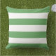 Die schlichte Outdoor-Kissenkonstruktion zeichnet sich durch ein Muster aus breiten, weißen, horizontalen Streifen mit grünem Blattgrün aus. Die klassische Gestaltung harmoniert mit jedem Dekor-Stil. Die Hintergrundfarbe kann geändert werden.
