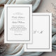 Einfach, elegant und geschmackvoll. Dieses klassische Hochzeitseinladungs-Design besticht durch eine doppelte Grenze, die Ihren Text umrahmt. Klassische Schriftzeichen werden für die Namen von Braut und Bräutigam und für den Empfang mit zeitlosen Serif-Schriftart für den Hochzeitstext verwendet. Sie können die Textplatzierung an Ihren Anzug anpassen, entfernen oder anpassen. Der beliebte weiße Hintergrund trägt zur klaren Einfachheit dieses Designs bei. Auf der Rückseite der Einladung befindet sich eine Textvorlage zum Einbinden des Monogrammes der Braut und des Bräutigams. Diese Einladungen sind sowohl in gedruckten als auch in papierlosen digitalen Download-Formaten erhältlich.