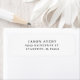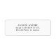 Modernes textbasiertes Rücksendelabel. Drei Linien, zentriertes Layout in einem einfachen Serif-Schriftart.