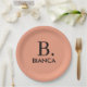 Einfache Korallenrosa-Minimalmonogramm Pappteller