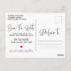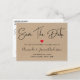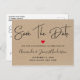 Elegante, einfache Schwarz-Weiß-Verlängerung Save the Date Postkarte. Das Design von ''Save the Date'' in der modernen Kalligraphie-Schrift in schwarzer Farbe auf Kraft-Textur. Bitte beachten Sie, dass kein richtiger Kraft verwendet wird, dies ist eine gedruckte digitale Abbildung. Fügen Sie Ihre Nachricht und weitere Details auf der Rückseite hinzu.