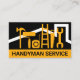 Eine obere schwarze Schicht verfügt über ein Set handlicher Werkzeuge mit einem Dachhintergrund. An der Unterseite der Karte, in der gelben Schicht liegt der Firmenname. Hinter einem weißen Cover befindet sich oben ein farbenprächtiges "Zuhause-hammer" Logo, das Sie verwenden können. Danach folgen Ihr Name, die Kontaktdaten und ein Slogan, um Ihre Dienste bekannt zu machen. Das ist ein großartiges Cover für Handyman.