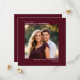 Diese einfache Hochzeit Save the Date-Karte zeichnet sich durch ein elegantes quadratisches Design mit bordeauxfarbenem Hintergrund und symmetrisch platziertem Text aus, der oben und rechts am unteren Rand gerechtfertigt ist. Laden Sie Ihr Foto hoch und geben Sie Ihren Gästen eine Vorankündigung über das bevorstehende Hochzeitstag.