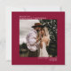 Diese einfache Hochzeit Save the Date-Karte zeichnet sich durch ein elegantes quadratisches Design aus, mit einem kranberroten Hintergrund und symmetrisch platziertem Text, der oben und rechts am unteren Rand gerechtfertigt verlassen ist. Laden Sie Ihr Foto hoch und geben Sie Ihren Gästen eine Vorankündigung über das bevorstehende Hochzeitstag.