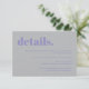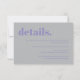 Einfache Lavendel-Silber-Hochzeitsdetails RSVP Karte