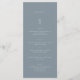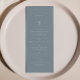 Elegant einfache minimale Blatt staubblauen 4x9" Wedding Table Menu Karten Flat Dinner Menü in modernen Skriptkalligraphie. Eine Auswahl von passenden Artikeln und 12x18 finden Sie in unserem Shop VelvetPaperCo.