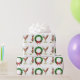 Extravagante, moderne Weihnachtsgeschichten JOY Blumenschrift mit roten Heiligen Beeren, Tannenarmen Kranz und Korallenrot gemusterte Packpapier.Es ist eine inspirierte extravagante einzigartige Verpackung für Ihre Weihnachtsgeschenke.