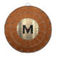 Moderne Dartplatte mit gebürstetem Metallicgold-Monogramm-Medaillon mit klassischer Blocktypografie, die auf einem braunen, gebeugten Lederhintergrund anfängt. Personalisieren Sie das Monogramm initial; verwenden Sie das Menü, um die Hintergrundfarbe oder Typografie zu ändern.