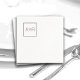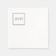 Eine dünne quadratische Linie mit einigen Anfangsbuchstaben im eleganten Schriftart-Stil, mit dem Bild eines kleinen rosa Herzens... in der oberen links Ecke der Serviette.