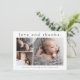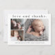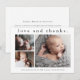 Eine süße 3-Foto Collage Geburt Ankündigung und vielen Dank Noten Karte mit einem einfachen modernen Typ und 3 Bilder auf der Vorderseite. Der Rücken ist eine Postkarte mit einem großen Titel und einer persönlichen Nachricht aus der Familie. Klicken Sie auf die Schaltfläche Bearbeiten, um dieses Design mit Ihren Fotos und Details anzupassen.