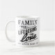 Feiern Sie die Liebe und Wärme der Familie mit dieser inspirierenden Zitat-Tasse. Dieses klassische Design verbindet mit der herzlichen Botschaft "Familie - wo das Leben beginnt und die Liebe nie endet" kühne Typografie mit einem klaren monochromen Stil und macht sie zu einer zeitlosen Ergänzung zu jeder Küche oder einem Büro. Diese stabile Tasse ist ideal für Kaffee, Tee oder heiße Schokolade. Sie ist sowohl mit Mikrowelle als auch mit Geschirrspüler ausgestattet und sorgt für eine lange Lebensdauer. Ob für sich selbst oder als nachdenkliches Geschenk, es ist ideal für Geburtstage, Hauswärme, Jubiläen oder einfach nur, um einem geliebten Menschen Wertschätzung zu schenken.