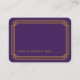 Diese Platzkarten verfügen über eine lila und goldene Farbpalette, einen geometrischen Rahmen und andere stilistische Details, die alle von Art Deco und den rauschenden Zwanziger Jahren inspiriert sind. Sie können die Textfelder des Beispiels nach Ihren Wünschen anpassen.