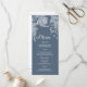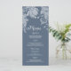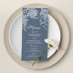 Eine einfache, elegante lila blauen und weißen Blumenspitze Hochzeitsmenü Einladung. Diese minimalistische pastellfarbene Sommerblumen-Hochzeitseinladung ist perfekt für jedes elegante Mädchen. Dieses Design eignet sich ideal für ein trendiges und stilvolles Hochzeitsfest. Passen Sie dieses Design mit Ihrer Nachricht und personalisierten Informationen an. Alle Designs sind gedruckt.