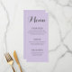Dieses lila Hochzeitsmenü bietet ein raffiniertes und minimalistisches Design, das sich perfekt für einen eleganten und modernen Tisch eignet. Mit klaren Linien und leicht lesbarem Text auf einem lila Hintergrund präsentiert dieses Menü elegant Ihre kulinarischen Vorstellungen für den Abend. Ideal, um Ihrem Hochzeitsdekor einen dezenten Pop zu verleihen, ist es ein stilvolles und praktisches Detail, das verschiedene Hochzeitsthemen ergänzt.