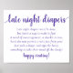 Der Weg, neue Eltern zu beraten und zu lachen, mit diesen kleinen Spätabenteuern wünscht sich gut Tafelschild: Einfache Dusche oder Geschlecht enthüllen Party geblüht Kalligraphiezeichen mit einem lustigen, lässigen, handgeschriebenen Drehbuch. Das klassische Design beinhaltet ein modernes, handhabbares Zitat-Typografie-Overlay mit Gedicht. Für andere Farben oder passende Produkte, besuchen Sie bitte den JustFharryn Zazzle Store, oder kontaktieren Sie den Designer, c/o Fharryn@yahoo.com Alle Rechte vorbehalten. #bohochic #zazzlemade