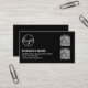 Moderne Visitenkarte mit einem einfachen und minimalen Design mit Ihrem Logo, Ihrem Firmennamen und Kontaktdaten in weiß auf schwarzem Hintergrund. Rechts sind zwei QR-Codes (wenn Sie es vorziehen, können Sie einen oder beide QR-Codes im Design-Editing-Tool entfernen). Ein einfaches und schlichtes Design, das immer noch so beruflich ist.