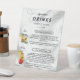 Mit diesem maßgeschneiderten Schild für Hochzeitsfeiern, das sorgfältig für schlichte minimalistische Feste konzipiert ist, stärken Sie Ihre Hochzeitsfeier in einem eleganten Bar. Dieses Podest besticht durch eine luxuriöse weiße Seidenbasis und elegante Schriftzeichen. Freuen Sie sich auf schlichte Eleganz und künstlerischen Charme. Auf die Wirkung zugeschnitten präsentiert es Ihre kuratierte Getränkeliste mit Flair und verwandelt funktionale Signage in ein faszinierendes Herzstück. Sein personalisiertes Design lädt die Gäste in Ihre Geschichte ein und steigert so die Exklusivität Ihrer Veranstaltung. Im Gegensatz zu generischen Getränkemarken verbindet dieses Podest zeitgenössischen Stil mit zielstrebiger Eleganz. Ideal für Paare, die sich mit gutem Luxus verwöhnen lassen, ist es eine hervorragende Ergänzung, die das Ambiente Ihres besonderen Tages noch verstärkt.