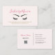 Eine einfache Makeup-Künstler-Visitenkarte mit langen Wimpern und Augenbrauen vor einem blassrosa Hintergrund. Personalisieren Sie Ihre Daten, indem Sie Ihren Namen, Ihre Kontaktinformationen und den Code qr auf der Rückseite hinzufügen.