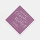 Einfache moderne Schrift zu essen, trinken & feiern die Hochzeit von Servietten. Der typografische Text liest Eat, Drink & feiern die Hochzeit von dann fügen Sie Ihre eigene Braut und Bräutigam Namen und Hochzeitstag. In diesem Design sind weitere lila Pflaumenfarben mit schwarzem Maulbeerrot mit weißem Schriftzeichen, Herzstücken und anderen Farbtönen verfügbar. © Original Design von www.mylittleedenweddings.com auf zazzle.
