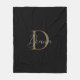 Einfache Midnight Black Mossy Gold Script Monogram Fleecedecke