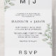 Einfache Minimal Greenery Monogram Wedding QR Code Alles in einer Einladung