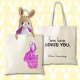 Diese einfache, minimale und moderne lila Gradient Osterhase Tasche ist eine großartige Alternative zu einem Osterkorb. Die Kinder werden den niedlichen Hasen auf der Vorderseite und die süße Botschaft der Liebe auf der Rückseite Liebe. Sie können es vorziehen, die Nachricht auf der Rückseite zu löschen, die Sie im Bereich "Personalisieren Sie mich" für nur eine niedliche Tasche mit einem gestempelten Hasen auf der Vorderseite tun können. Alternativ können Sie den Text auch nach Ihren Wünschen anpassen. Diese Briefmarke entstand aus meiner Naturfotografie eines Hasen, der im letzten Jahr in meinem Hinterhof häufig war! :) Foto von Amanda Renee, CtrlZ Digital Designs 2023