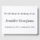 Dieses elegante Beerdigung-/Gedenkbuch enthält die Meldung "Wir werden immer an Sie denken" und den individuellen Namen und das Geburtsdatum des verstorbenen Beileids. Es könnte genutzt werden, um Beileid für die Familie und Freunde von jemandem zu erfassen, der vor kurzem verstorben ist.