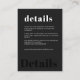 Moderne moderne, fette Typografie schwarze Hochzeitsdetails Mini-Größe Gehäuse Karte mit Vorlagentext. +++++++++++++ Geeignet für zeitgenössischen Stil bei Hochzeiten in der Saison.