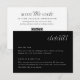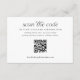 Einfache Hochzeitsinformation: Diese elegante, moderne, minimalistische Hochzeitsdetails-Karte verfügt über eine schwarze, schlichte Front mit knackigem weißen Text und bietet eine raffinierte Möglichkeit, wichtige Informationen zu teilen. Auf der Rückseite befindet sich ein komfortabler QR-Code, der es den Gästen ermöglicht, auf Ihrer Hochzeitswebsite einfach zu scannen und auf weitere Details zuzugreifen. Ideal für Paare, die Stil und Funktionalität schätzen, ist diese Karte eine einfache aber raffinierte Ergänzung zu Ihrem Hochzeitsgeschenk.