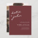 Auf dem Höhepunkt der Pandemie, wo keine Ansammlungen erlaubt sind, laden Sie einfach Ihre Freunde und Lieben zu einer virtuellen Hochzeitsfeier mit dieser modernen und schicken Postcard in der trendigsten Hochzeitsfarbe Thema des Jahres, Zimt-Rose. Es zeichnet sich durch eine lässige kalligraphische Schrift des Brautnamens und des Bräutigams zusammen mit dem Bild hinten aus.