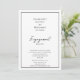 Diese einfache minimalistische Einladung zu einer Verlobung ist perfekt für Ihre elegante, moderne Hochzeit. Dieses Design ist mit schwarzem, einfachem Drehbuch auf einem neutralen, hellweißen Hintergrund ausgestattet, um Ihre klassische traditionelle Hochzeit oder minimalistische Hochzeit im Frühling, Sommer, Herbst oder Winter. Gerne stehen wir Ihnen für Fragen zu diesem Design zur Verfügung.
