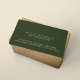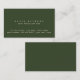 Einfache und elegante dunkelgrüne Kontaktkarte mit Feldern für Namen, Beruf und Adresse, alle auf der Vorderseite gedruckt... nach dem Motto "Weniger ist mehr" visuell, um einen großen ersten Eindruck zu machen.
