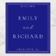 Einfache Minimalistische, moderne Navy Blue Silver Wedding Couple Wine Briet and Groom Date Label