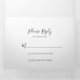 Diese einfache, minimalistische Hochzeitseinladung ist perfekt für eine rustikale Hochzeit. Das einfache und elegante Design zeichnet sich durch klassische und extravagante Schriftzeichen in Schwarz und Weiß aus. Rett Papier, indem mehr Details in die Einladung aufgenommen werden anstatt auf einer separaten Gehäusekarte.