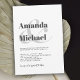 Projekt ein Gefühl der modernen Einfachheit mit diesem stilvollen einfachen Hochzeitsinklusivdesign im beliebten Weiß - mit kohlegrauem Text. Die Namen der Braut und des Bräutigams sind fett gedruckt, mit einem großen stylischen Ampere und einem Beispiel ihrer Namen. Dieser zeitgenössische Text ist mit einer einfachen Schrift gepaart, die die Details Ihres besonderen Tages enthält. Das Ergebnis ist ein geschmackvoller minimalistischer Look mit modernem Flair und ein Fokus auf Braut und Bräutigam und deren Farbschema. Personalisieren Sie den Text mit Ihren Daten in der benutzerfreundlichen Textvorlage.
