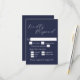 Einfache minimalistisch elegante Script Hochzeit RSVP Karte auf marineblau für eine Hochzeitseinladung, moderne uAwg Antwort Gehäuse Karte mit Essensauswahl.