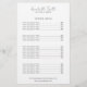 Moderne schwarz-weiße Preisliste mit einem einfachen und minimalistischen Layout mit Ihrem Firmennamen in einer eleganten Schriftzeichen. Im Folgenden finden Sie Ihr Service-Menü und Ihre Kontaktinformationen. Diese berufliche Preisliste ist ideal für Makeup-Künstler, Friseur, Schönheitssalon, Lasertechniker, Massagetherapeut, Fotograf und vieles mehr.