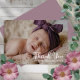 Einfach süße Foto-Mädchen-Dusche "Danke" mit einem Single großen Foto auf der Vorderseite mit dem Namen Ihres Babys und Ihre einzigartige Botschaft und Unterschrift auf der Rückseite. Auf der Rückseite befindet sich ein duskischer Lavendelhintergrund. Foto für Platzhalter für Vorlagen mit freundlichen Beispielen. Design von Holiday Hearts Designs.