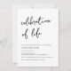 Die einfache Schrift-Feier des Lebens Einladung ist eine wunderschön gestaltete Einladung, die perfekt ist, um die Erinnerung eines geliebten Menschen zu ehren. Diese Einladung zeichnet sich durch einen schlichten, eleganten Script-Schriftart aus, der ein Gefühl von Wärme und Komfort vermittelt. Die Einladung ist leicht zu lesen und enthält alle wesentlichen Informationen über die Veranstaltung, einschließlich Datum, Uhrzeit, Ort und UAWG. So können die Gäste ganz einfach planen und sich auf das Leben ihrer Lieben vorbereiten. Das minimalistische Design der Einladung ermöglicht auch die Anpassung und Personalisierung, sodass Sie es zu Ihrem eigenen machen und Ihre eigenen persönlichen Touchs hinzufügen können. Egal ob Sie die Einladung drucken oder digital versenden möchten, diese Einladung wird als eine wunderschöne und sinnvolle Erinnerung des Lebens Ihrer Lieben dienen. Insgesamt ist die Simple Minimalistisch Script Celebration of Life Invitation eine nachdenkliche und geschmackvolle Art, Freunde und Familie einzuladen, um mit Ihnen das Leben eines geliebten Menschen zu feiern. Seine Einfachheit und Eleganz machen es zu einer perfekten Wahl für jeden, der ein besonderes und bedeutendes Ereignis schaffen möchte.